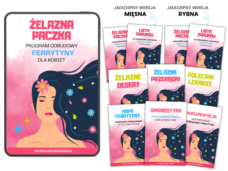 ŻELAZNA PACZKA to kompleksowy, uporządkowany proces wychodzenia z niskiej ferrytyny. Stworzony specjalnie dla kobiet, które są zmęczone chaosem i sprzecznymi informacjami.